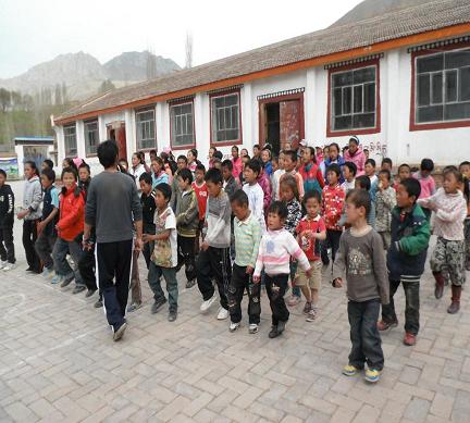 后來的日子里,我們給孩子們組織召開了化旦尖措小學的第一次運動會。清晨的冷風冰凍了我們拿著粉筆畫跑道的雙手,而孩子們的主動幫忙溫暖鼓舞了我們的士氣,我們克服了中途停電等種種困難在上午舉行完了個人組的比賽。孩子們踢毽子的靈活,跳繩的輕盈,跑步的飛快,比賽時的團結……那一幕幕讓我第一次在那里想起了我的大學,想到在前幾天我們校園里舉行的運動會,雖然規(guī)模陣勢大不不同,但是每當進行曲響起、號令搶打響,我就會情不自禁地心潮澎湃。下午的時候,我們的團體賽也井然有序的進行著,大孩子給小孩子用藏語翻譯著我們說的漢語,小孩子用表情神態(tài)回應著我們的要求。所有項目都結束了,頒獎典禮上孩子的興奮依舊高漲,他們拿著我們從大學校園里募捐到的全新的文具和體育器材做的獎品時,笑得那么天真無邪,那么暖人心懷。