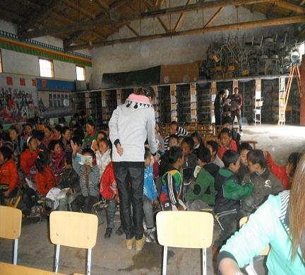 后來的日子里,我們?nèi)フ砹撕⒆觽兊男D書館,從那些捐來的書籍中我們感受到了恰當?shù)年P懷和值得反思的捐贈。很開心書架上不乏《十萬個為什么》《上下五千前》《童話故事》等適合孩子們的圖書,但也有《審計年鑒》《大學英語教程》《武俠小說》等在我看來不那么合適的書籍,也許捐贈者另有心意吧,希望原本漢語水平不高的他們能夠成為一個藏區(qū)的金庸或者是培養(yǎng)一種對大學英語和大學問的向往吧。