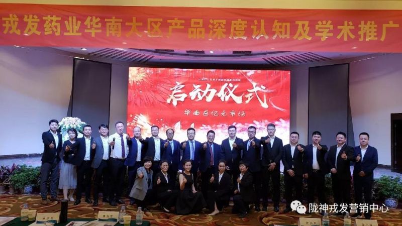 作為此次會(huì)議的壓軸環(huán)節(jié),隴神戎發(fā)營銷總監(jiān)蘇海龍先生上臺(tái)表明了2019年華南大區(qū)元胡止痛滴丸銷售額過億的信心,并邀請(qǐng)所有領(lǐng)導(dǎo)及合作伙伴上臺(tái),共同開啟了“華南大區(qū)億元市場(chǎng)啟動(dòng)儀式”。