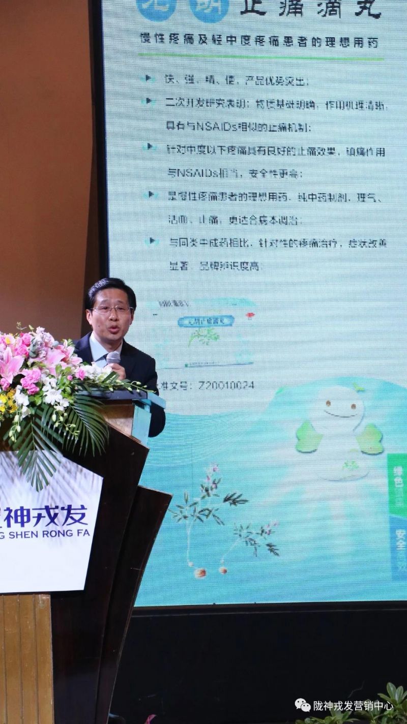 接下來,由甘肅隴神戎發(fā)藥業(yè)股份有限公司董事、總經(jīng)理康永紅先生做重要講話?悼偦仡櫫穗]神戎發(fā)從建廠直到現(xiàn)在一步一個(gè)腳印的路程,以及所獲得的諸多科技、質(zhì)量獎(jiǎng)項(xiàng)。新生產(chǎn)基地的建成投產(chǎn)是隴神戎發(fā)做強(qiáng)、做大、做優(yōu)的基石。康總經(jīng)理在隴神戎發(fā)積極投入的營銷支持,與合作伙伴的互利共贏,設(shè)置各個(gè)大區(qū)及學(xué)術(shù)人員,加強(qiáng)產(chǎn)品力打造等方面進(jìn)行了簡(jiǎn)介。康總經(jīng)理表示,要抓住隴藥產(chǎn)業(yè)發(fā)展及甘肅中藥大品種培育的時(shí)機(jī),把元胡止痛滴丸推到一個(gè)新的高度,隴神戎發(fā)愿與各位合作伙伴精誠合作、共贏未來!