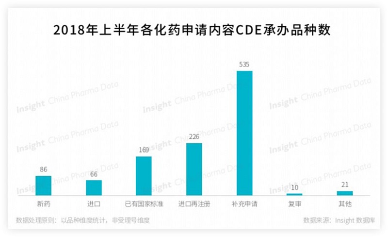 補(bǔ)充申請(qǐng)是申報(bào)類型中最為主要的部分,同時(shí),值得注意的是,今年上半年新藥申報(bào)數(shù)量均超過進(jìn)口藥數(shù)量。