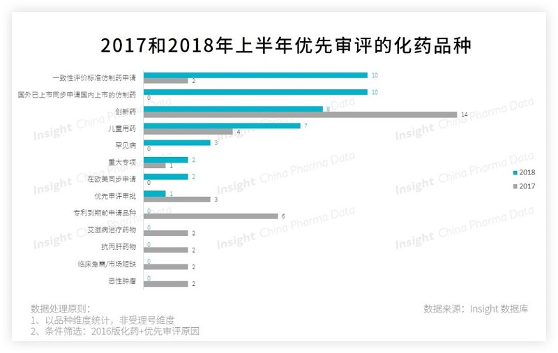 相比去年,今年在歐美同步申請(qǐng)、重大專項(xiàng)、罕見病、兒童用藥、國外已上市同步申請(qǐng)國內(nèi)上市的仿制藥和一致性評(píng)價(jià)標(biāo)準(zhǔn)仿制藥申請(qǐng)這 6 個(gè)優(yōu)先審評(píng)類別上,獲得優(yōu)先審評(píng)審批資格的藥品數(shù)更多。