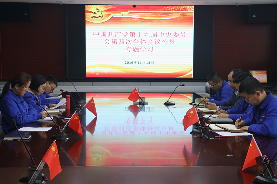 會議強調(diào),要提高政治站位,認(rèn)真學(xué)習(xí)貫徹十九屆四中全會精神,進(jìn)一步樹牢“四個意識”,堅定“四個自信”,堅決做到“兩個維護”。把學(xué)習(xí)貫徹全會精神與推動當(dāng)前各項重點工作緊密結(jié)合起來,以實際工作成效來檢驗學(xué)習(xí)貫徹成果。結(jié)合“不忘初心、牢記使命”主題教育,通過中心組學(xué)習(xí)、各支部“三會一課”、主題黨日活動等形式,立即組織傳達(dá)學(xué)習(xí)全會精神,確保覆蓋到每一名黨員,在公司掀起學(xué)習(xí)宣傳全會精神的熱潮。