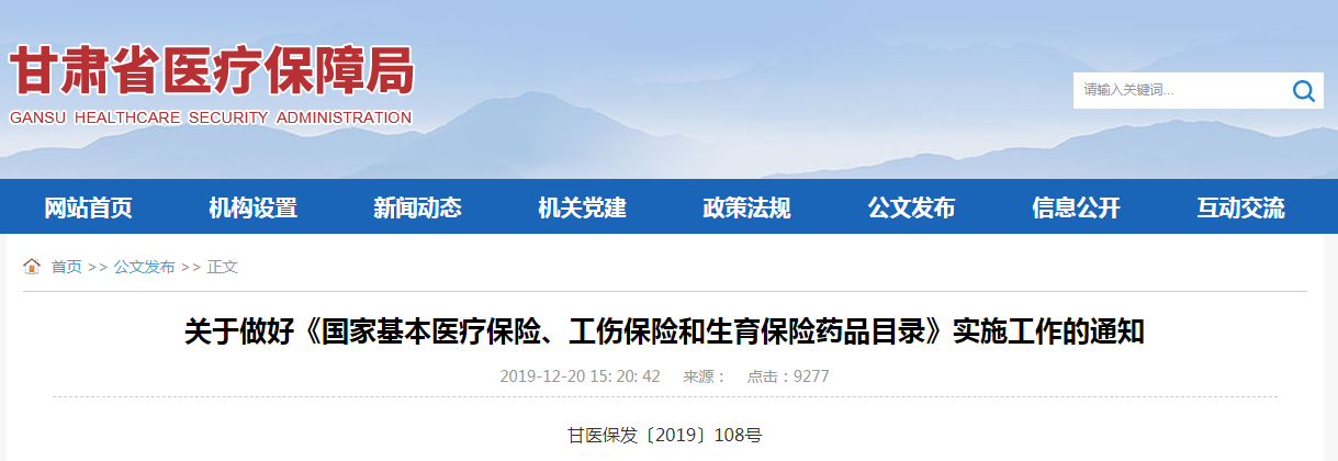 甘肅省醫(yī)療保障局關(guān)于做好《國家基本醫(yī)療保險(xiǎn)、工傷保險(xiǎn)和生育保險(xiǎn)藥品目錄》實(shí)施工作的通知