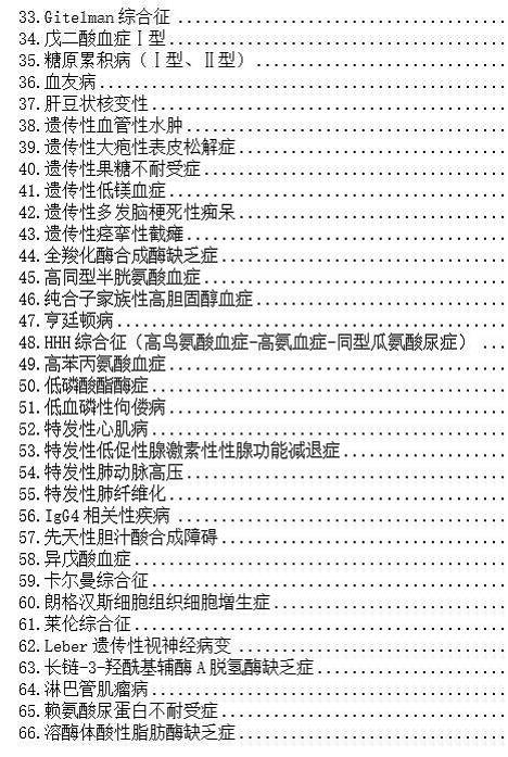 以下為121種罕見病病種目錄: