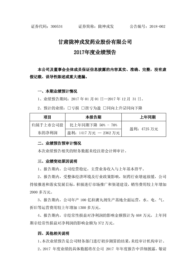 2017年度業(yè)績(jī)預(yù)告