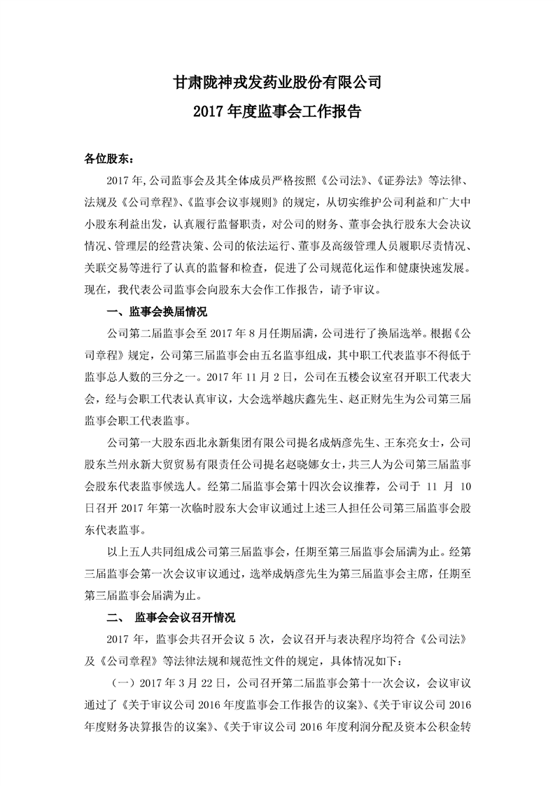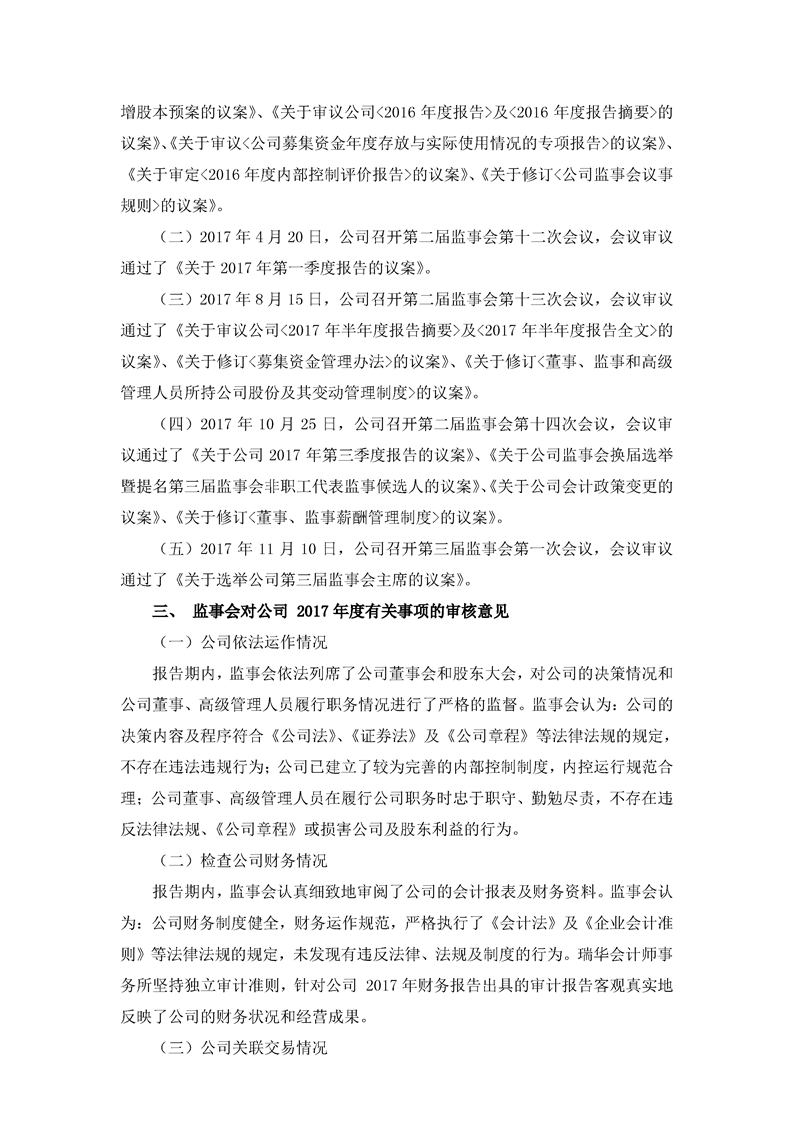 2017 年度監(jiān)事會(huì)工作報(bào)告