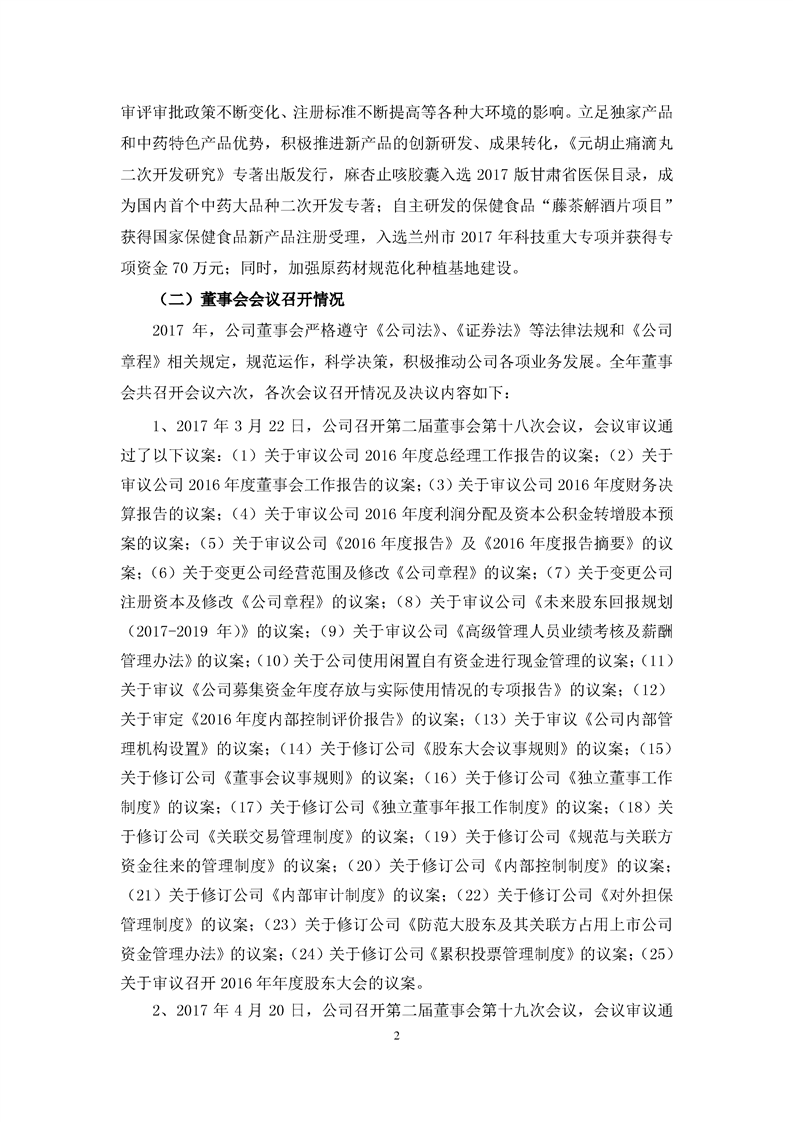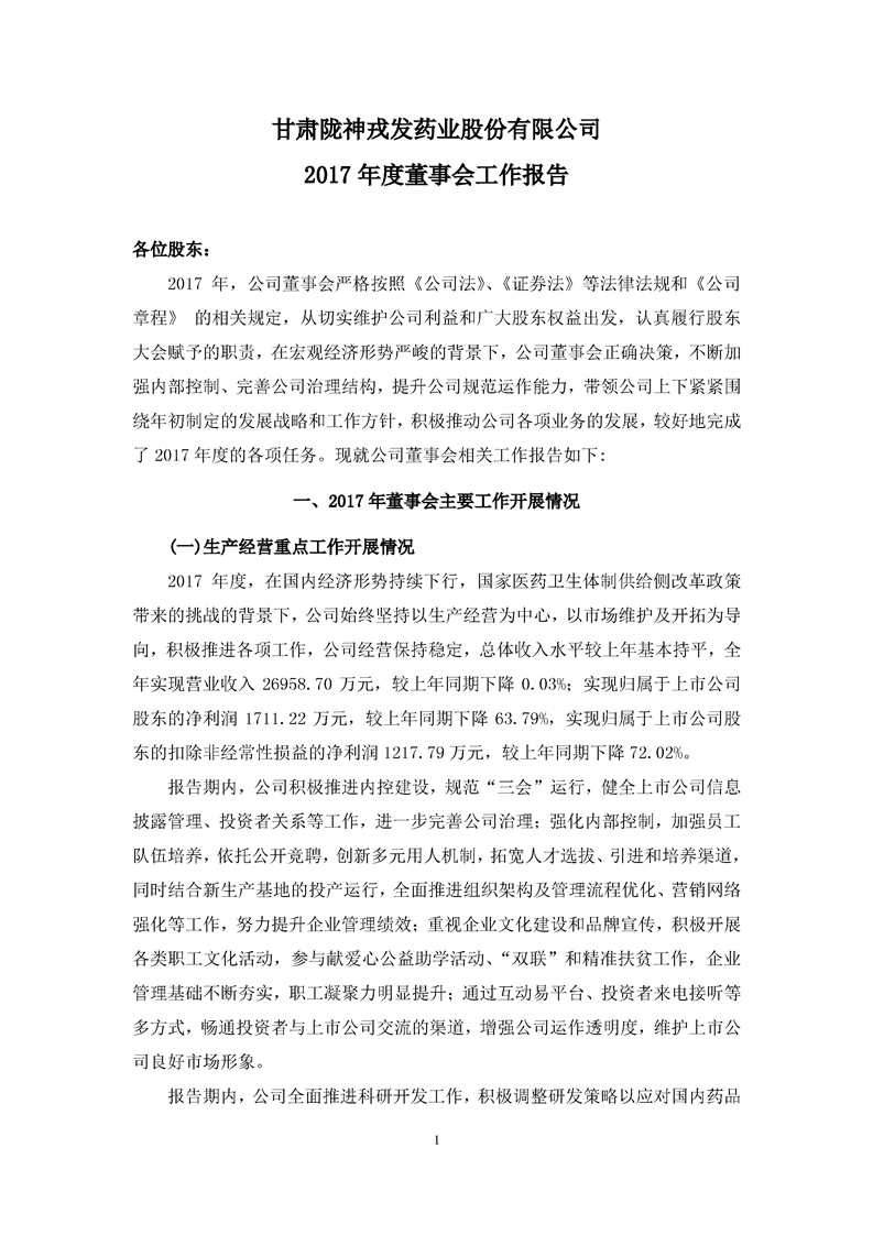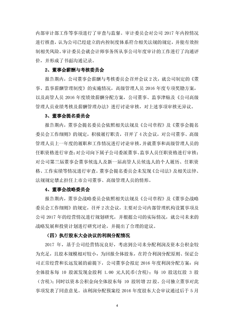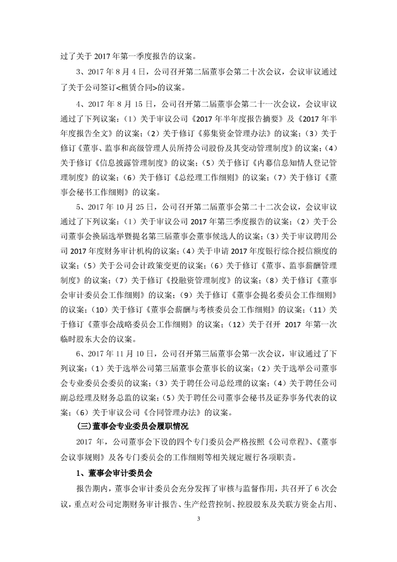 2017 年度董事會工作報(bào)告