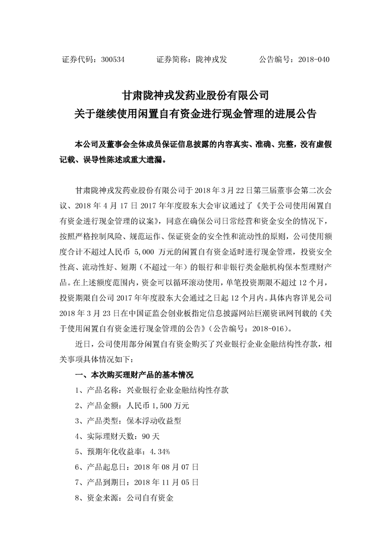 關(guān)于繼續(xù)使用閑置自有資金進(jìn)行現(xiàn)金管理的進(jìn)展公告