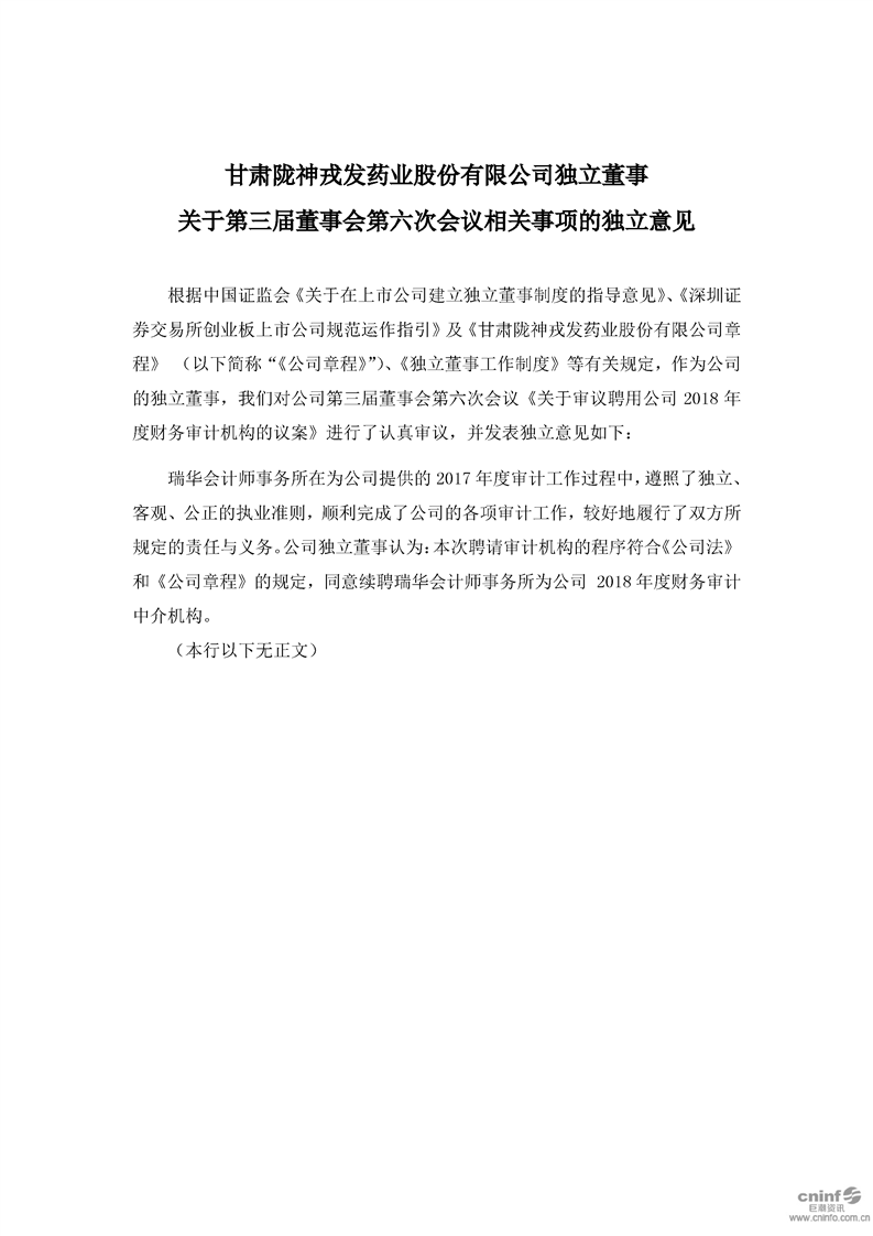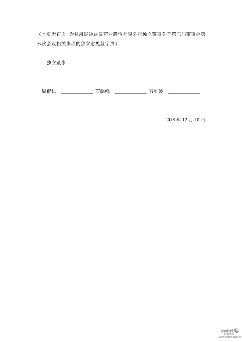 獨(dú)立董事 關(guān)于第三屆董事會(huì)第六次會(huì)議相關(guān)事項(xiàng)的獨(dú)立意見