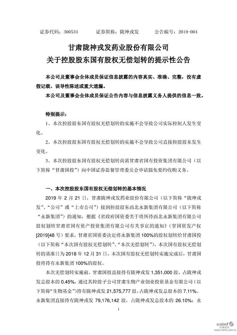 關(guān)于控股股東國(guó)有股權(quán)無償劃轉(zhuǎn)的提示性公告
