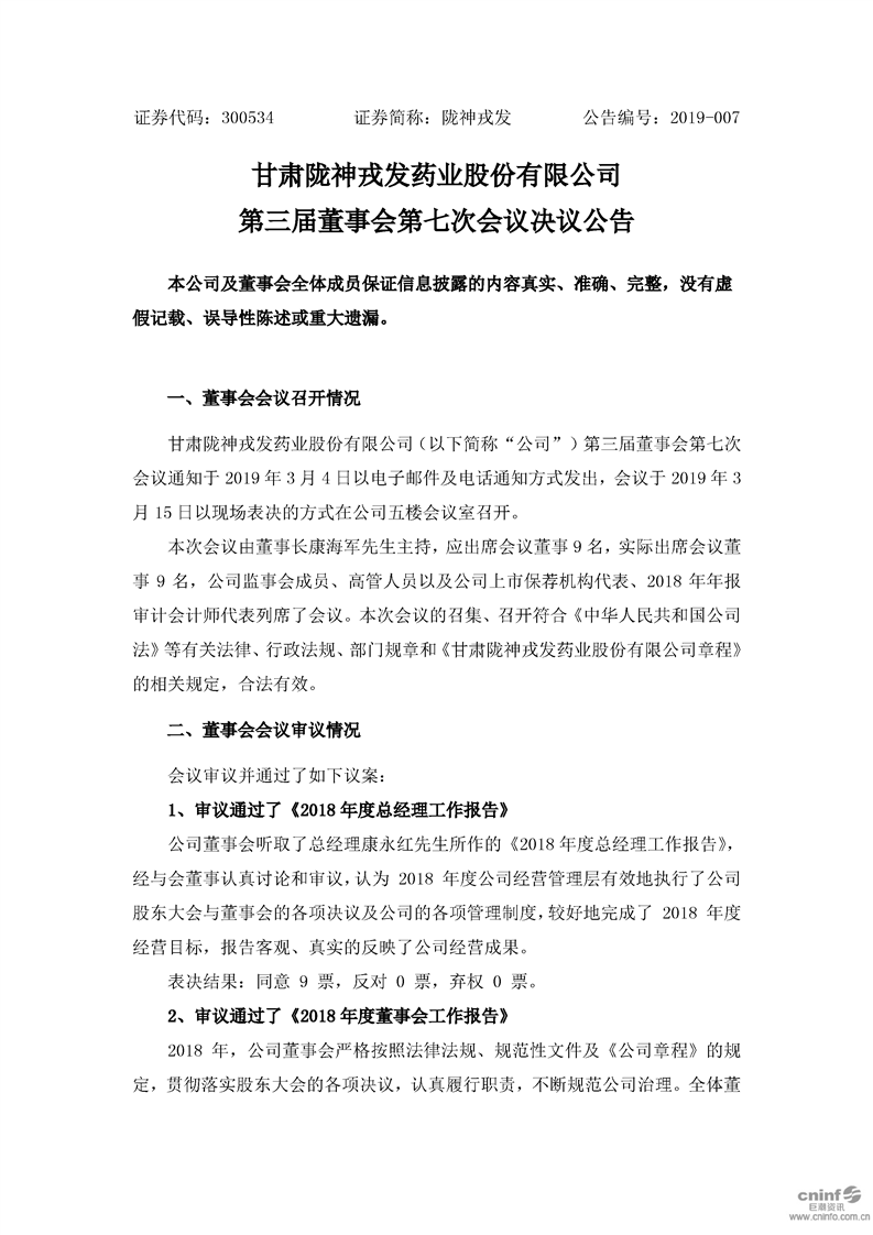 第三屆董事會(huì)第七次會(huì)議決議公告