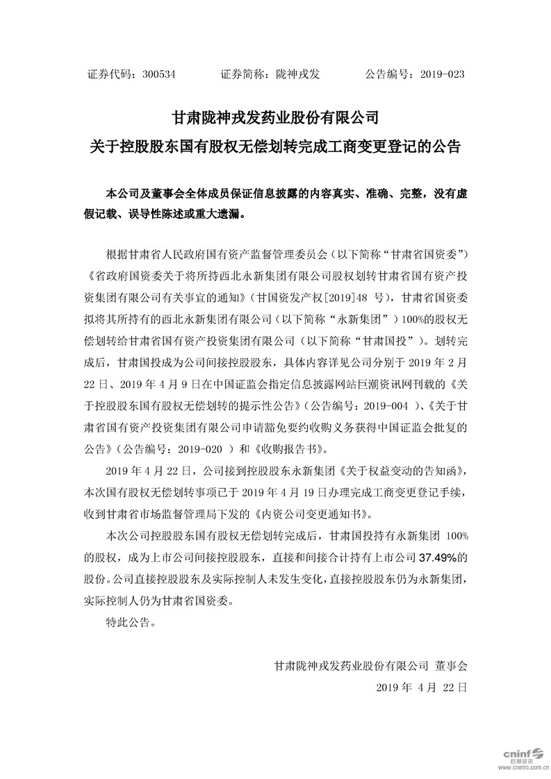 關(guān)于控股股東國(guó)有股權(quán)無(wú)償劃轉(zhuǎn)完成工商變更登記的公告