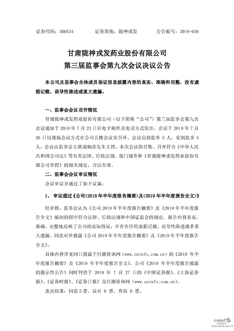 第三屆監(jiān)事會(huì)第九次會(huì)議決議公告