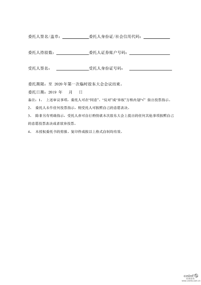 關(guān)于召開2020年第一次臨時股東大會的通知