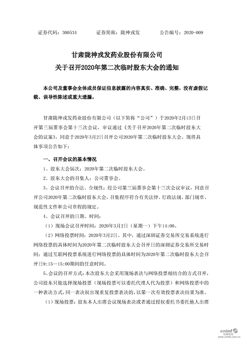關(guān)于召開(kāi)2020年第二次臨時(shí)股東大會(huì)的通知