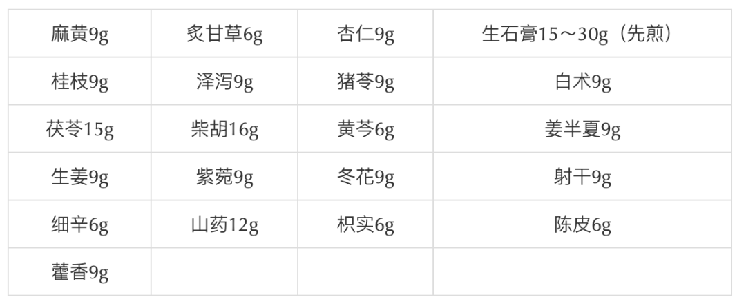 此外,國家衛(wèi)健委最新發(fā)布的新型冠狀病毒感染的肺炎診療方案中,也對(duì)中醫(yī)預(yù)防治療上給出了明確建議。因此,廣醫(yī)一院中醫(yī)科新冠防治組總結(jié)往年治療流感經(jīng)驗(yàn),結(jié)合嶺南氣候、水土、飲食、人文等特點(diǎn),擬定出外感發(fā)熱中藥協(xié)定處方。(注意此方適合外感發(fā)熱人群,健康人群不建議)