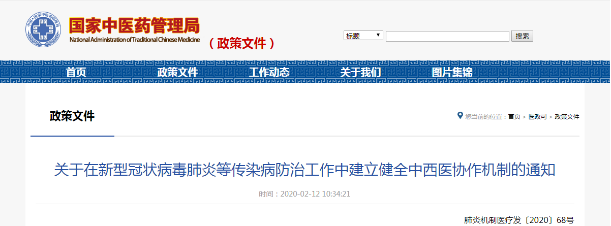 關于在新型冠狀病毒肺炎等傳染病防治工作中建立健全中西醫(yī)協(xié)作機制的通知