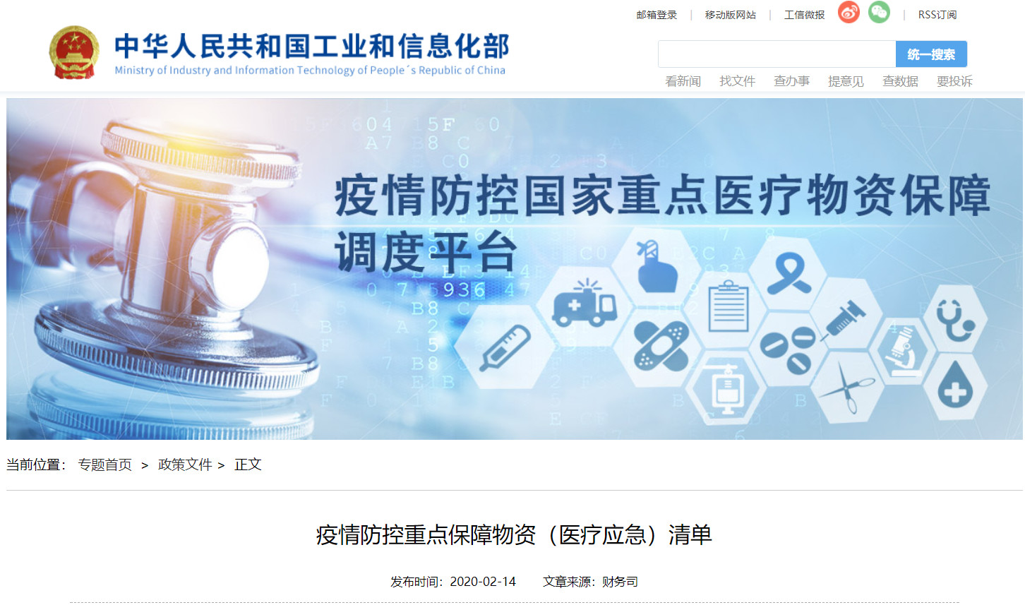 根據(jù)《關(guān)于支持新型冠狀病毒感染的肺炎疫情防控有關(guān)稅收政策的公告》(財政部 稅務(wù)總局公告2020年第8號)相關(guān)要求,我部確定了疫情防控重點保障物資清單中醫(yī)療應(yīng)急保障物資的具體范圍,形成疫情防控重點保障物資(醫(yī)療應(yīng)急)清單,現(xiàn)予以公布。該清單將視疫情防控需要進(jìn)行動態(tài)調(diào)整。