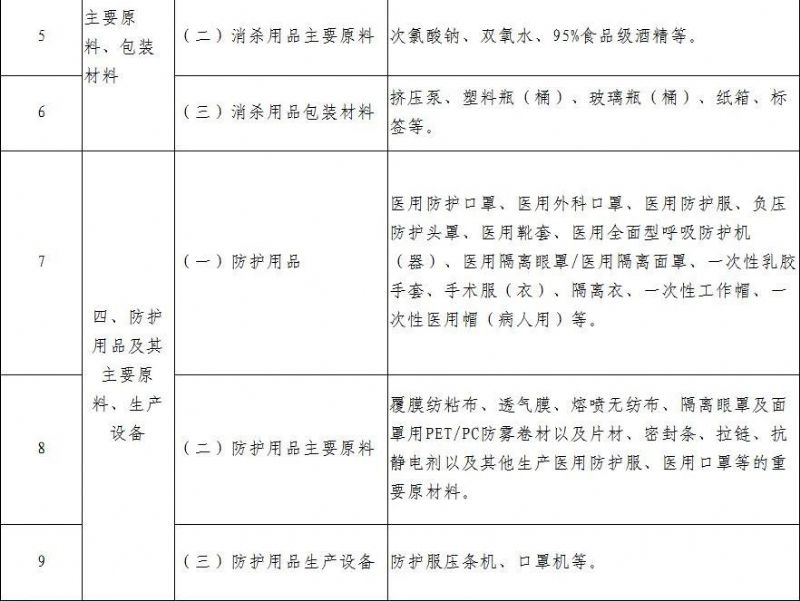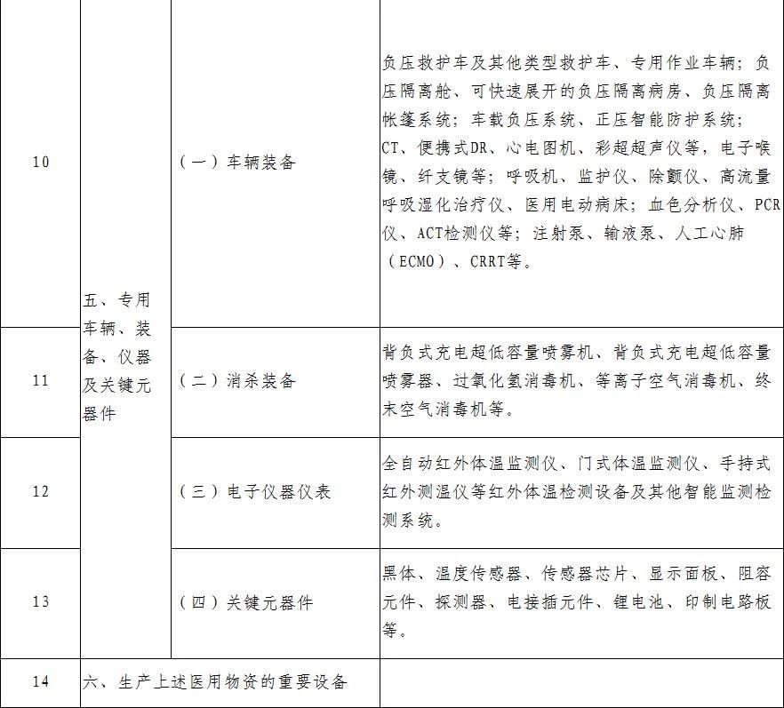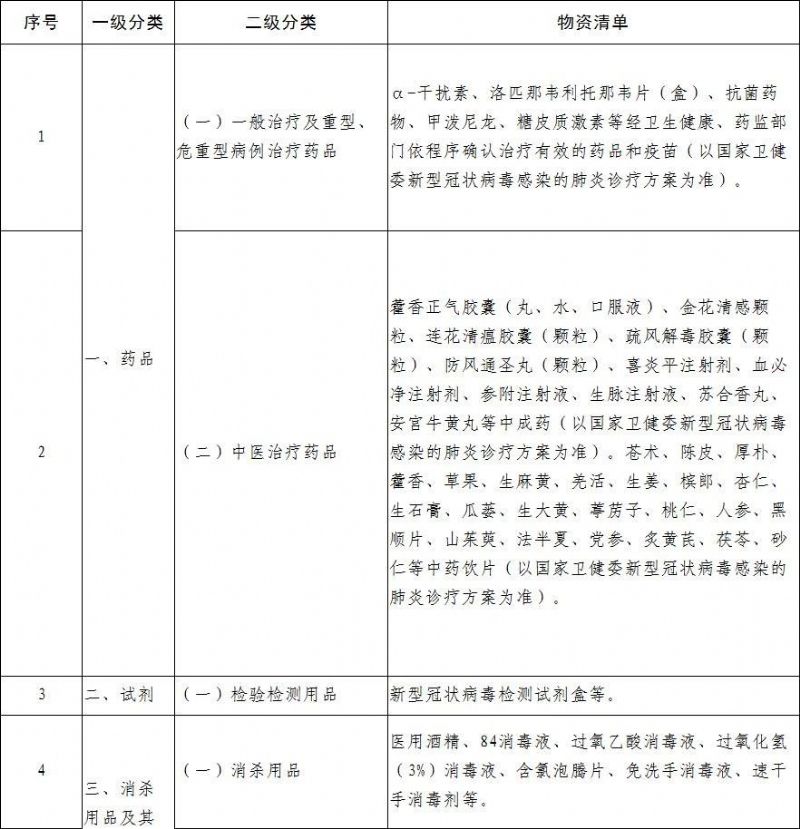 疫情防控重點保障物資(醫(yī)療應(yīng)急)清單