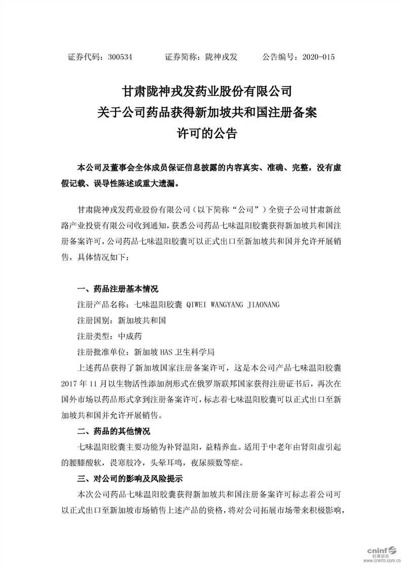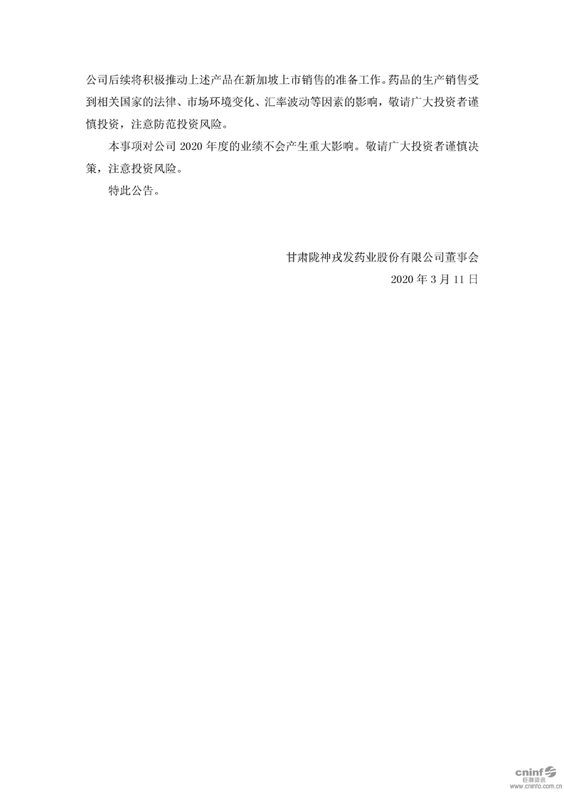 關(guān)于公司藥品獲得新加坡共和國注冊(cè)備案許可的公告