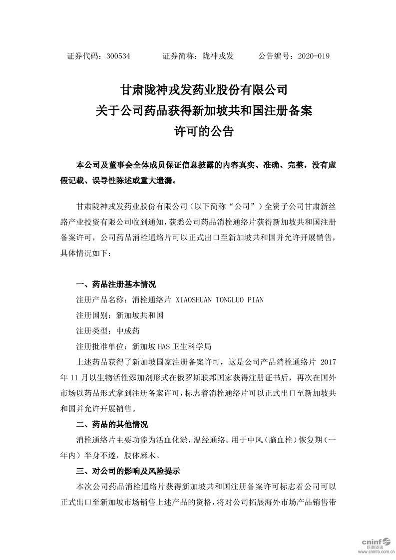 關(guān)于公司藥品獲得新加坡共和國(guó)注冊(cè)備案許可的公告