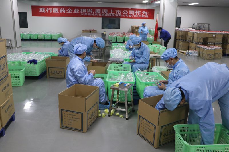 精準施策護航全面復(fù)產(chǎn)。為減少人員聚集,隴神戎發(fā)嚴格執(zhí)行復(fù)工人員輪崗及倒班制度,開工以后每天兩次體溫監(jiān)測,同時加大對生產(chǎn)區(qū)的消殺頻次,對人員實行倒班制,白班從100多個職工減少到了51人,中班從30人減少到15人,夜班3人,截止2月29日,生產(chǎn)元胡止痛滴丸10836萬丸、復(fù)方丹參片800萬片、麻杏止咳膠囊100萬粒。同時,根據(jù)當前疫情防控情況市場需求,結(jié)合隴神戎發(fā)實際情況,以及隴神戎發(fā)未來發(fā)展規(guī)劃等因素,著手變更經(jīng)營范圍并修改《公司章程》,將“口罩、防護服、消毒液、測溫儀等生產(chǎn)和銷售”納入隴神戎發(fā)經(jīng)營范圍,新增日產(chǎn)能10噸75%乙醇消毒液生產(chǎn)線1條,目前已產(chǎn)75%乙醇消毒液71.6噸,已售44.35噸。