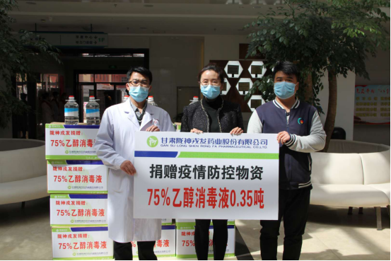 甘肅隴神戎發(fā)藥業(yè)股份有限公司向蘭州出入境邊防檢查站、甘肅省聽(tīng)力語(yǔ)言康復(fù)中心捐贈(zèng)75%乙醇消毒液