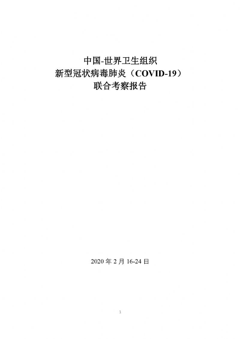 官方發(fā)布《中國(guó)-世界衛(wèi)生組織新型冠狀病毒肺炎(COVID-19)聯(lián)合考察報(bào)告》