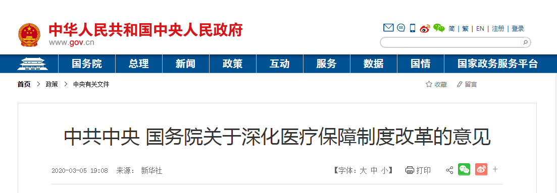 中共中央 國務(wù)院關(guān)于深化醫(yī)療保障制度改革的意見