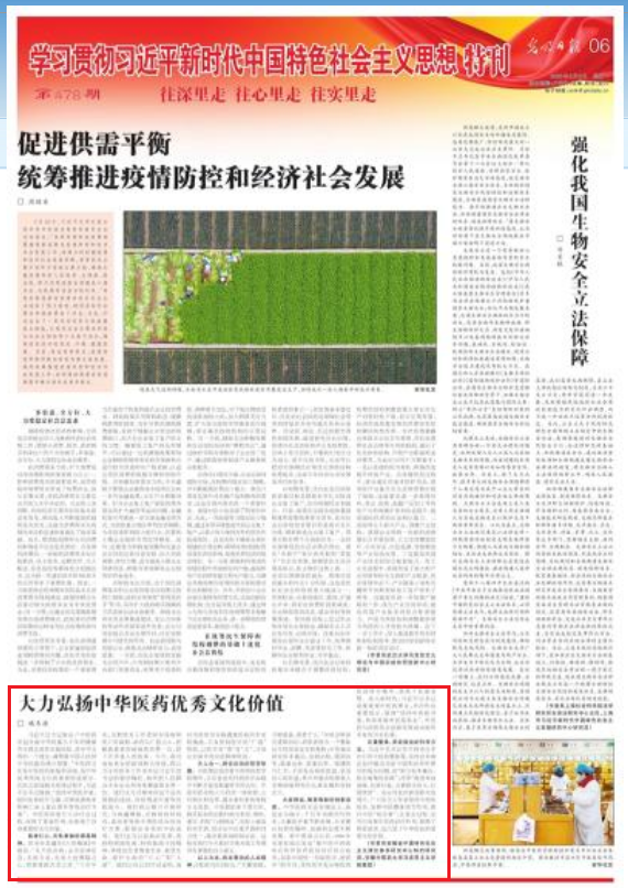 光明日?qǐng)?bào)發(fā)文:大力弘揚(yáng)中華醫(yī)藥優(yōu)秀文化價(jià)值