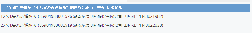 小兒安乃近灌腸液:2個(gè)批準(zhǔn)文號(hào)