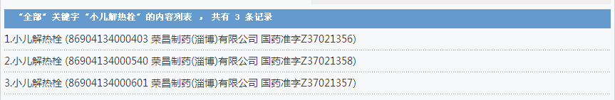 小兒解熱栓:3個(gè)批準(zhǔn)文號(hào)
