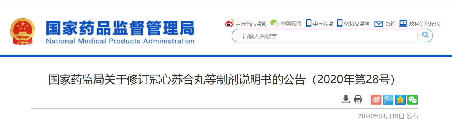 一、冠心蘇合丸等制劑的生產(chǎn)企業(yè)均應(yīng)依據(jù)《藥品注冊管理辦法》等有關(guān)規(guī)定,按照說明書修訂要求(見附件),提出修訂說明書的補(bǔ)充申請,于2020年6月5日前報省級藥品監(jiān)管部門備案。