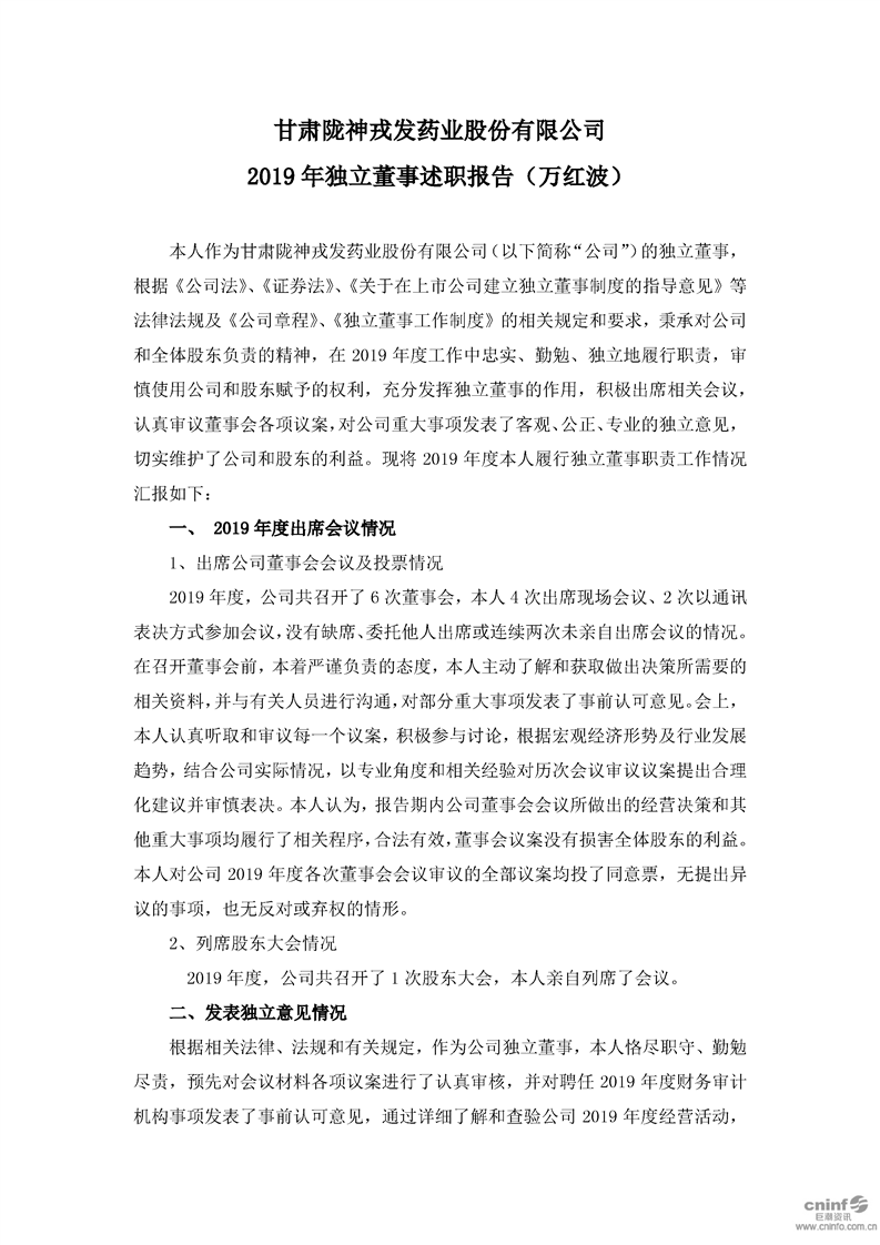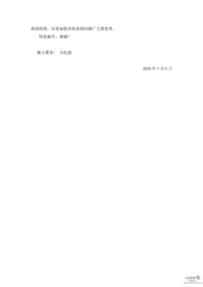 2019年獨(dú)立董事述職報(bào)告(萬紅波)