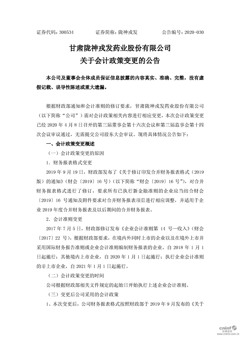 關于會計政策變更的公告