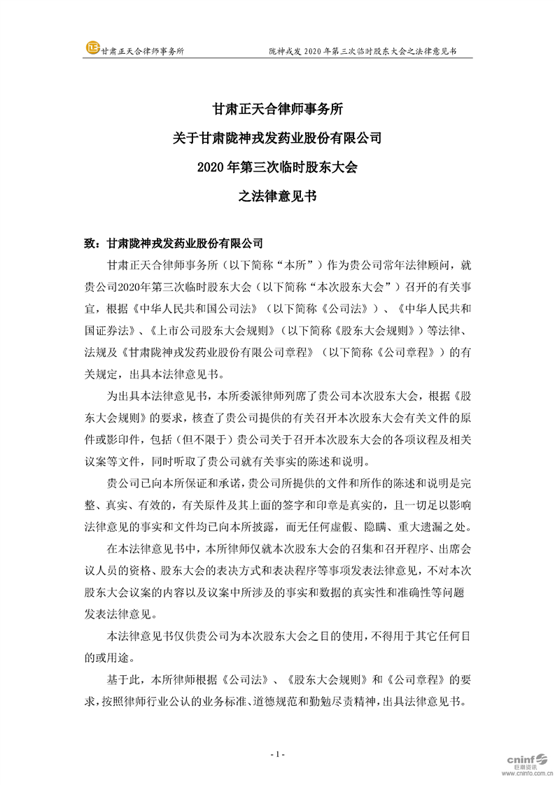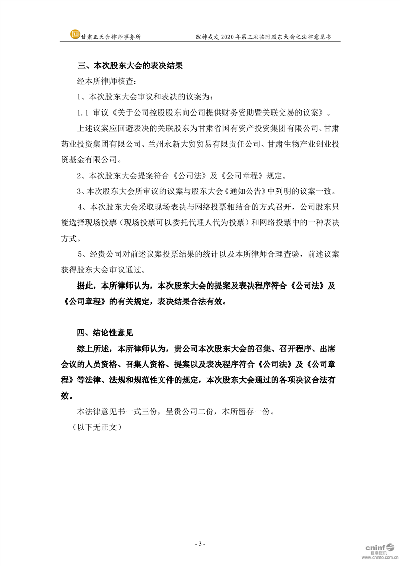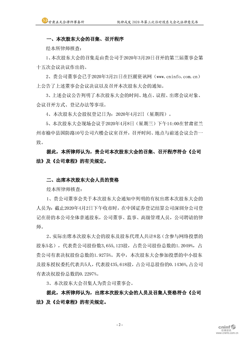 2020年第三次臨時(shí)股東大會(huì)之法律意見書