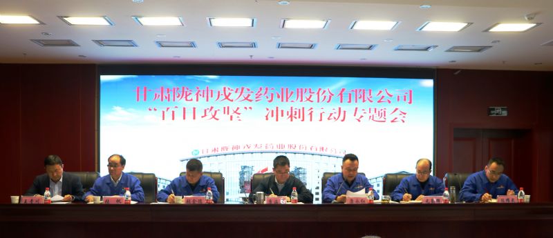 為進一步落實集團公司第29次黨委會會議精神,持續(xù)推進公司“百日攻堅”沖刺行動各項任務(wù)落地見效,確保2021年重點工作、重點任務(wù)、重點項目全面完成。2021年10月15日上午,隴神戎發(fā)組織公司全體領(lǐng)導(dǎo)班子、班組長以上管理人員、部分職工代表及所屬企業(yè)主要負責(zé)人召開了“百日攻堅”沖刺行動專題工作會議。會議由公司董事、黨委書記、總經(jīng)理康永紅主持,甘肅藥業(yè)集團黨委委員、副總經(jīng)理兼隴神戎發(fā)董事長康海軍參加會議。