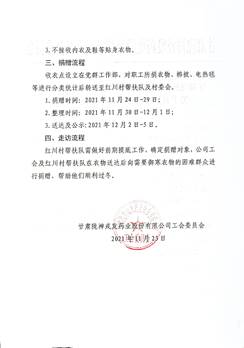 為進(jìn)一步深入開(kāi)展“我為群眾辦實(shí)事” 活動(dòng),有效推動(dòng)脫貧攻堅(jiān)成果與鄉(xiāng)村振興的有效銜接,確!叭(lèi)戶(hù)”人員(指:脫貧不穩(wěn)定戶(hù)、邊緣易致貧戶(hù)、突發(fā)嚴(yán)重困難戶(hù)貧困)和低保戶(hù)過(guò)一個(gè)暖冬,隴神戎發(fā)工會(huì)于近期開(kāi)展“暖冬行動(dòng)”,面向公司全體職工發(fā)出倡議,鼓勵(lì)職工將家中閑置的冬衣、毛衣、棉被等御寒物品捐獻(xiàn)出來(lái),向定西市安定區(qū)李家堡鎮(zhèn)紅川村“三類(lèi)戶(hù)”人員和低保戶(hù)進(jìn)行捐贈(zèng),確保困難群眾溫暖過(guò)冬。