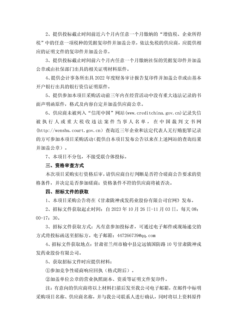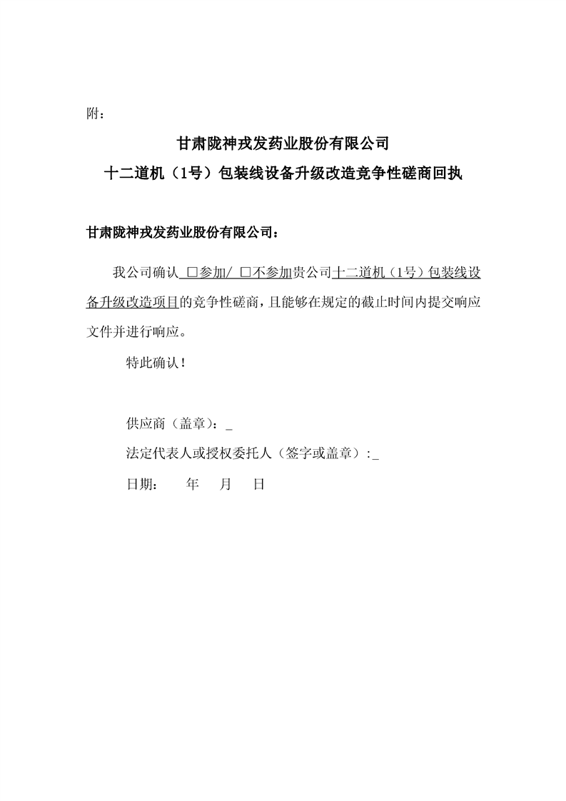 甘肅隴神戎發(fā)藥業(yè)股份有限公司生產(chǎn)線十二道機(1號)包裝線設備升級改造項目采購競爭性磋商公告