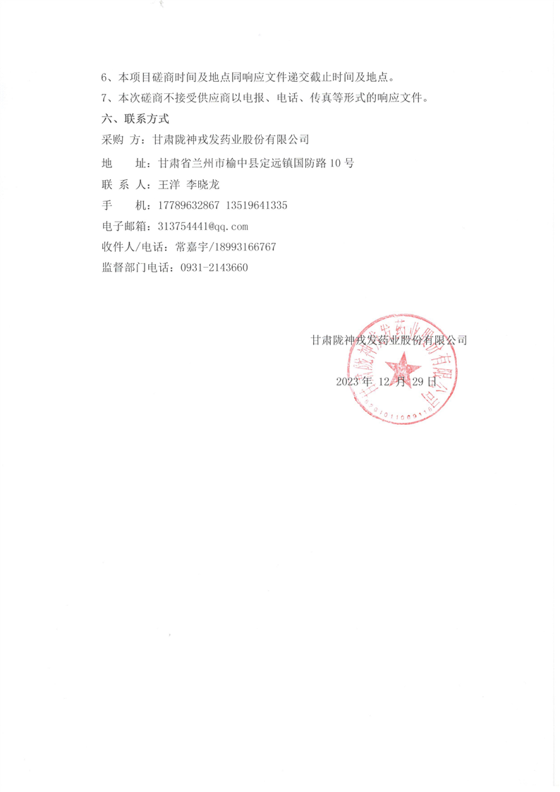 甘肅隴神戎發(fā)藥業(yè)股份有限公司廠區(qū)電梯日常維護保養(yǎng)服務采購競爭性磋商公告