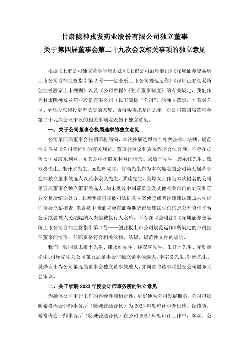 獨(dú)立董事關(guān)于第四屆董事會(huì)第二十九次會(huì)議相關(guān)事項(xiàng)的獨(dú)立意見(jiàn)