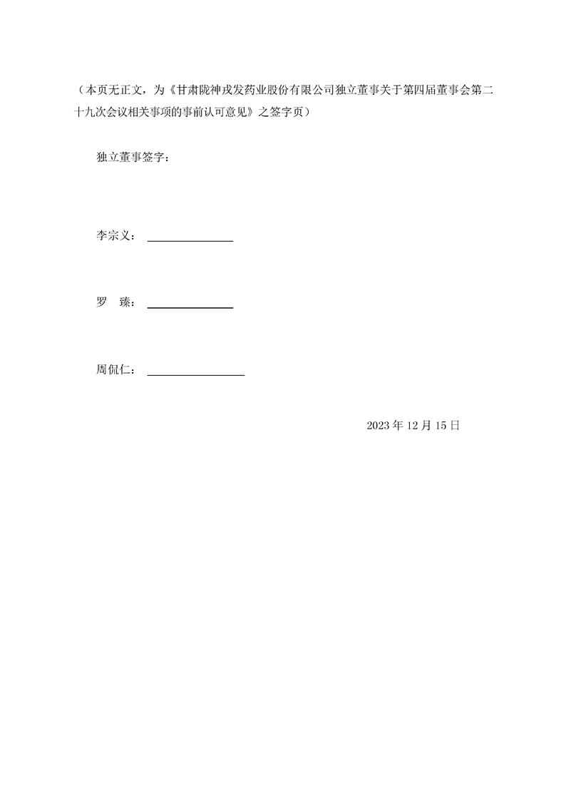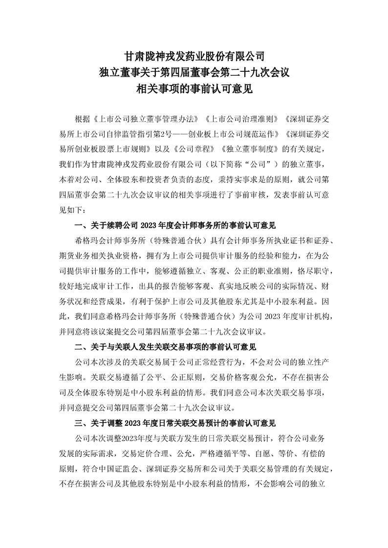 獨(dú)立董事關(guān)于第四屆董事會第二十九次會議相關(guān)事項的事前認(rèn)可意見