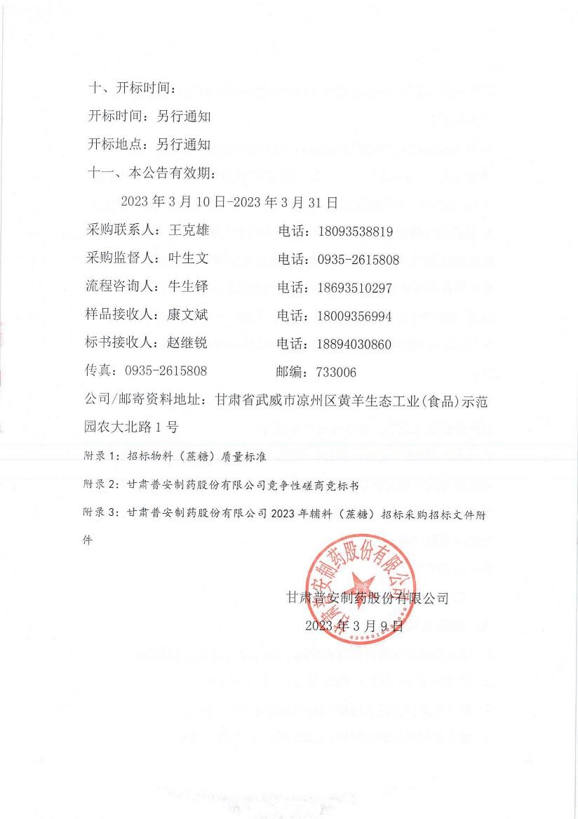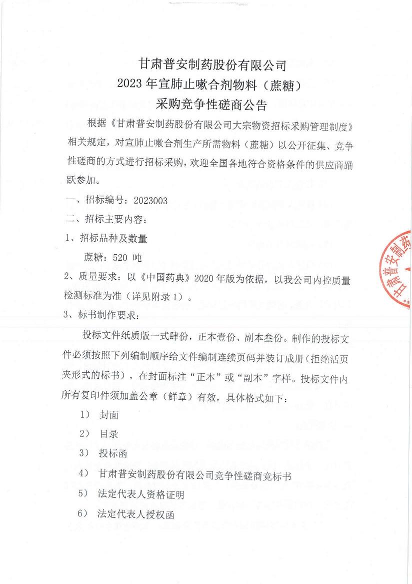 甘肅普安制藥股份有限公司2023年宣肺止嗽合劑物料(蔗糖)采購競爭性磋商公告