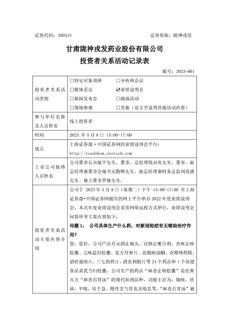 2022年度業(yè)績(jī)說明會(huì)投資者關(guān)系活動(dòng)記錄表