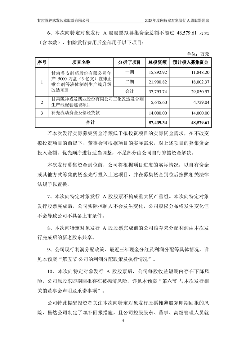 公司2023年度向特定對象發(fā)行A股股票預案