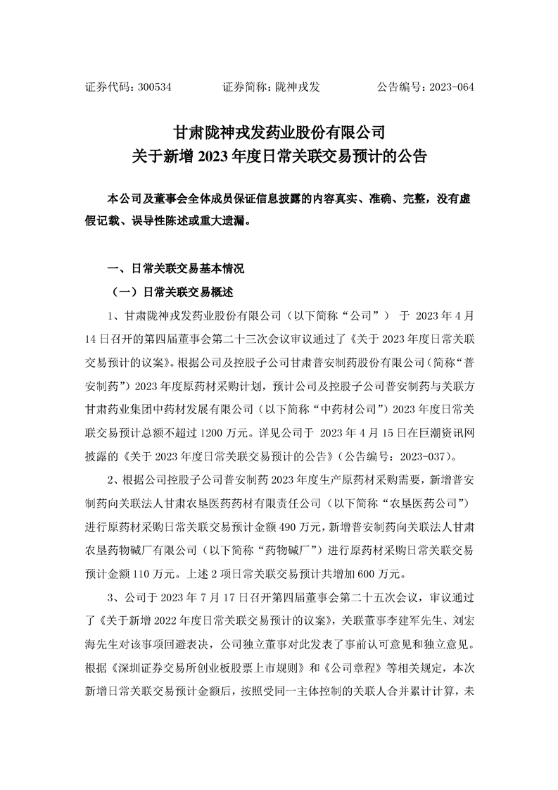 關(guān)于新增2023年度日常關(guān)聯(lián)交易預(yù)計的公告