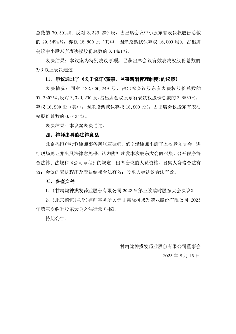 2023年第三次臨時(shí)股東大會(huì)決議公告