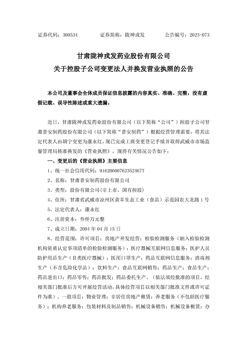 關(guān)于控股子公司變更法人并換發(fā)營業(yè)執(zhí)照的公告