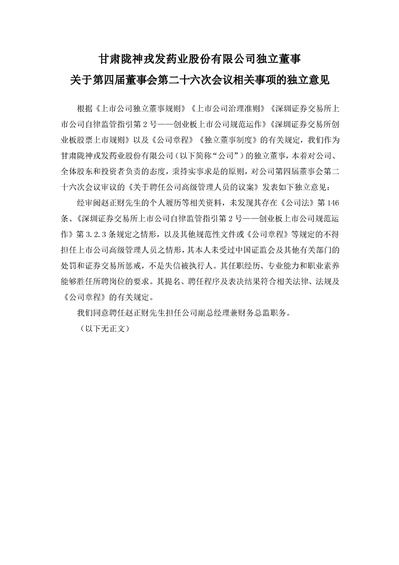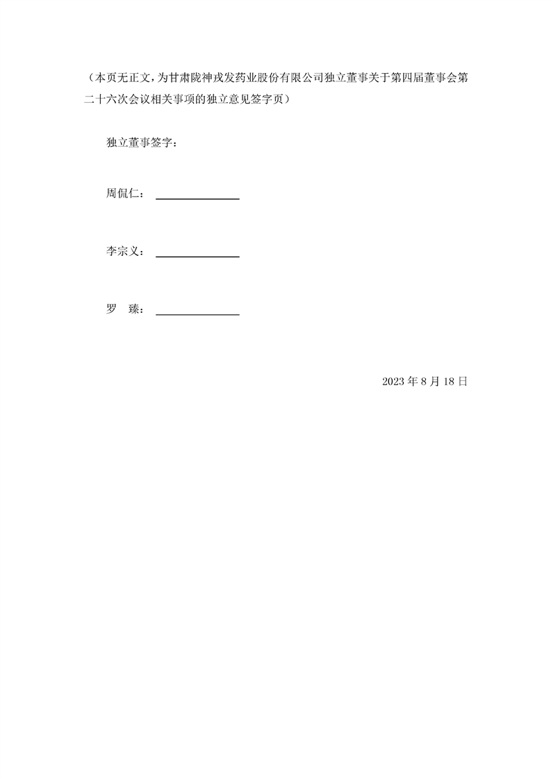 獨立董事關(guān)于第四屆董事會第二十六次會議相關(guān)事項的獨立意見